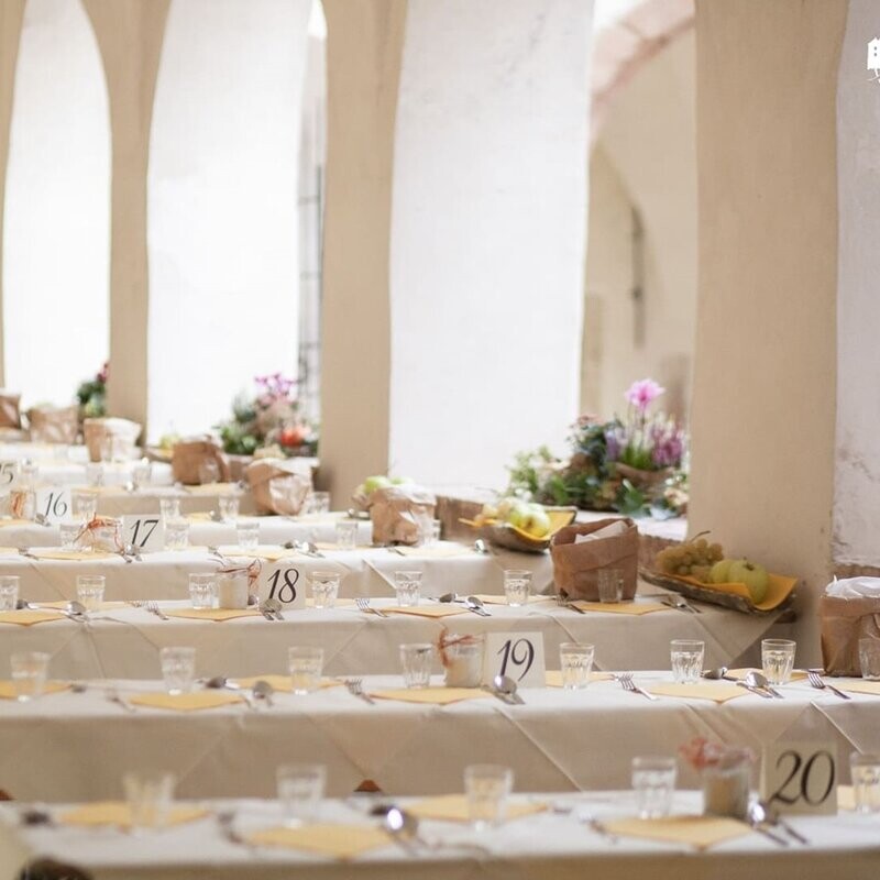 Wir laden Sie in den Kreuzgang des Augustinerklosters ein, das heute das Museo Etnografico Trentino San Michele beherbergt, zu einem besonderen Abendessen.
