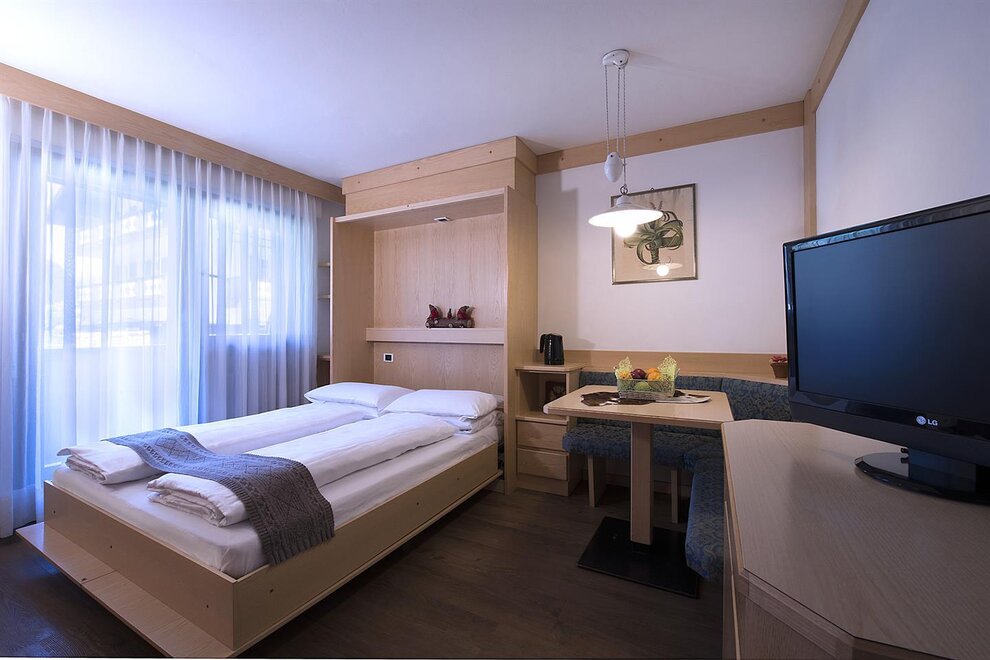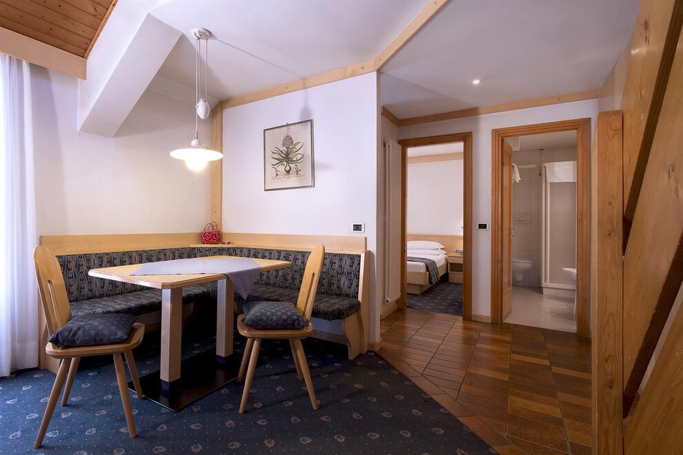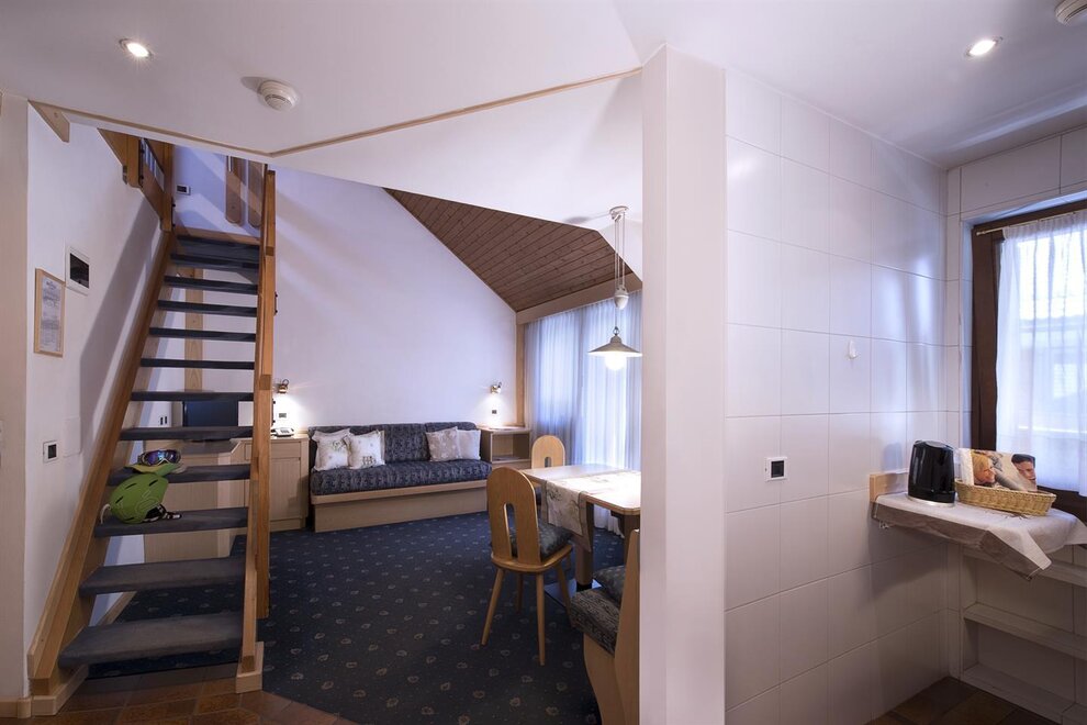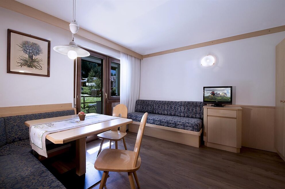 After an exciting day out in the snow, the modern and fully equipped apartments provide the perfect atmosphere to relax. While beginners make their first turns on easy nursery slopes in the town center, more experienced skiers take the Belvedere cable railway (only 100m away) to the nearby Val Gardena or the Arabba slopes. The linked Dolomiti Superski ensures endless ski fun. Thanks to the ski bus, guests reach also less famous but superb ski resorts, such as Catinaccio, Col Rodella, Ciampac, Buffaure...What are you waiting for? At the "Kinderland" kids learn the techniques of skiing and enjoy fantastic moments in a warm and cozy atmosphere, while mum and dad have enough time to discover the more difficult slopes. In the evening, besides après ski, there are numerous shops and elegant boutiques. Or how about relaxing in the nearby wellness center, developed according the Roman spa philosophy?