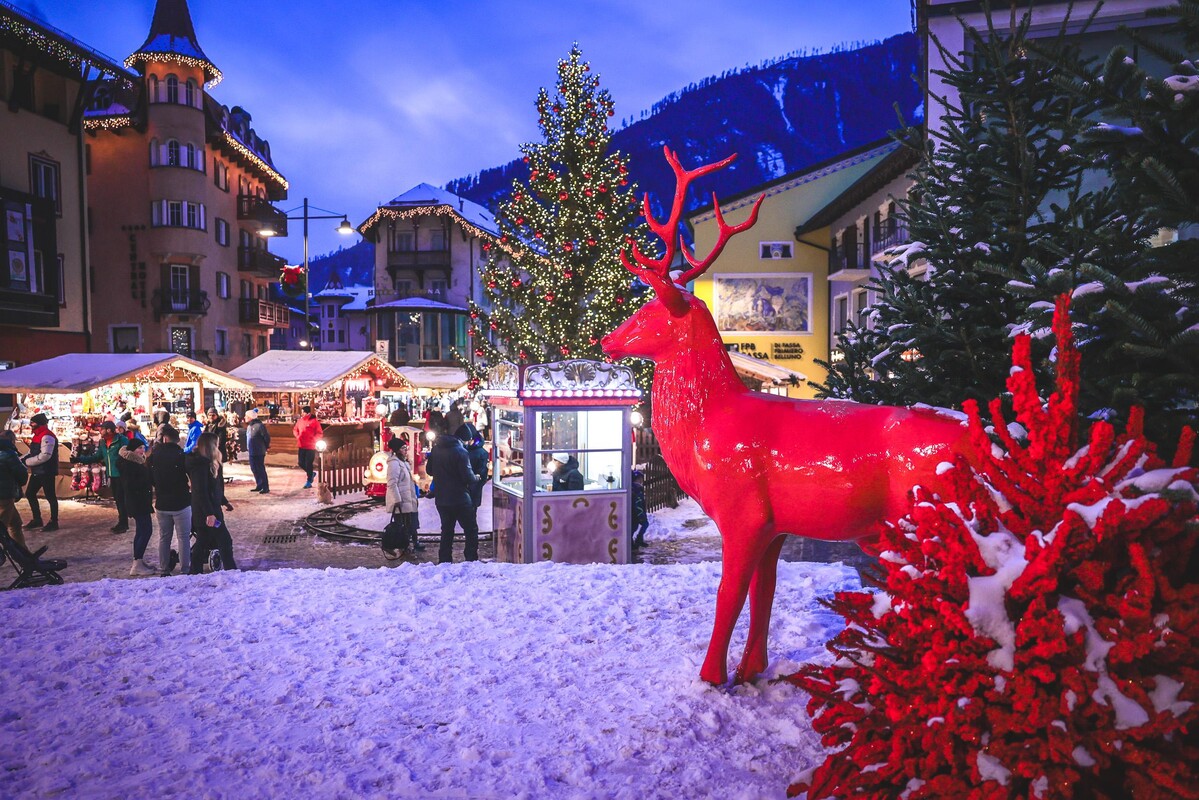 Moena, the "Fairy of the Dolomites", becomes a magical Christmas village with wooden houses, travelling shows, treats and children's carousels