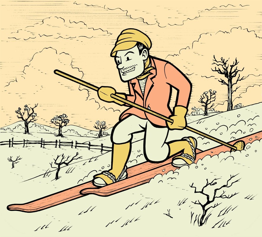 Temporary exhibition on the history of skiing, inspired by the graphic novel of the same name by artist Manuel Riz from Val di Fassa