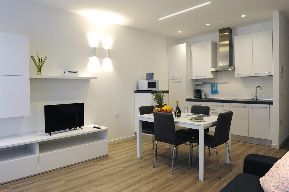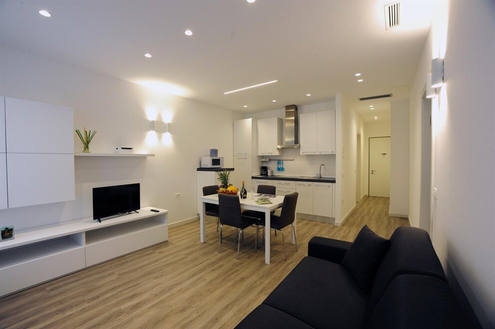 wi-fi gratis, piumone, asciugacapelli, biancheria da bagno, coperte, biancheria tavola-cucina, soggiorno/camera letto abbinate, WiFi, angolo cottura, appartamento senza moquette, bollitore acqua, possib. collegamento internet, macchina caffè, stoviglie fornite, microonde, arredamento moderno, asciugamani compresi, riscaldamento, armadio, TV-Sat, climatizzatore, scomparto del ghiaccio, cucina, frigorifero, camera/app. per famiglie