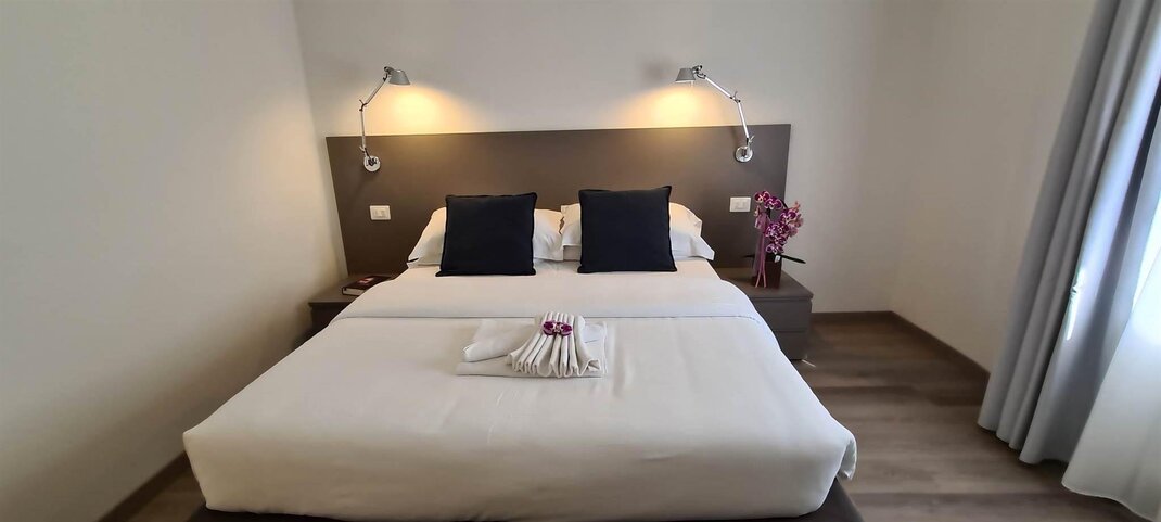 Bilocale Standard 45mq2 personeCamera con letto matrimoniale, bagno con doccia e lavatrice, soggiorno con angolo cottura completamente stovigliato, TV schermo piatto, wi-fi gratuito.