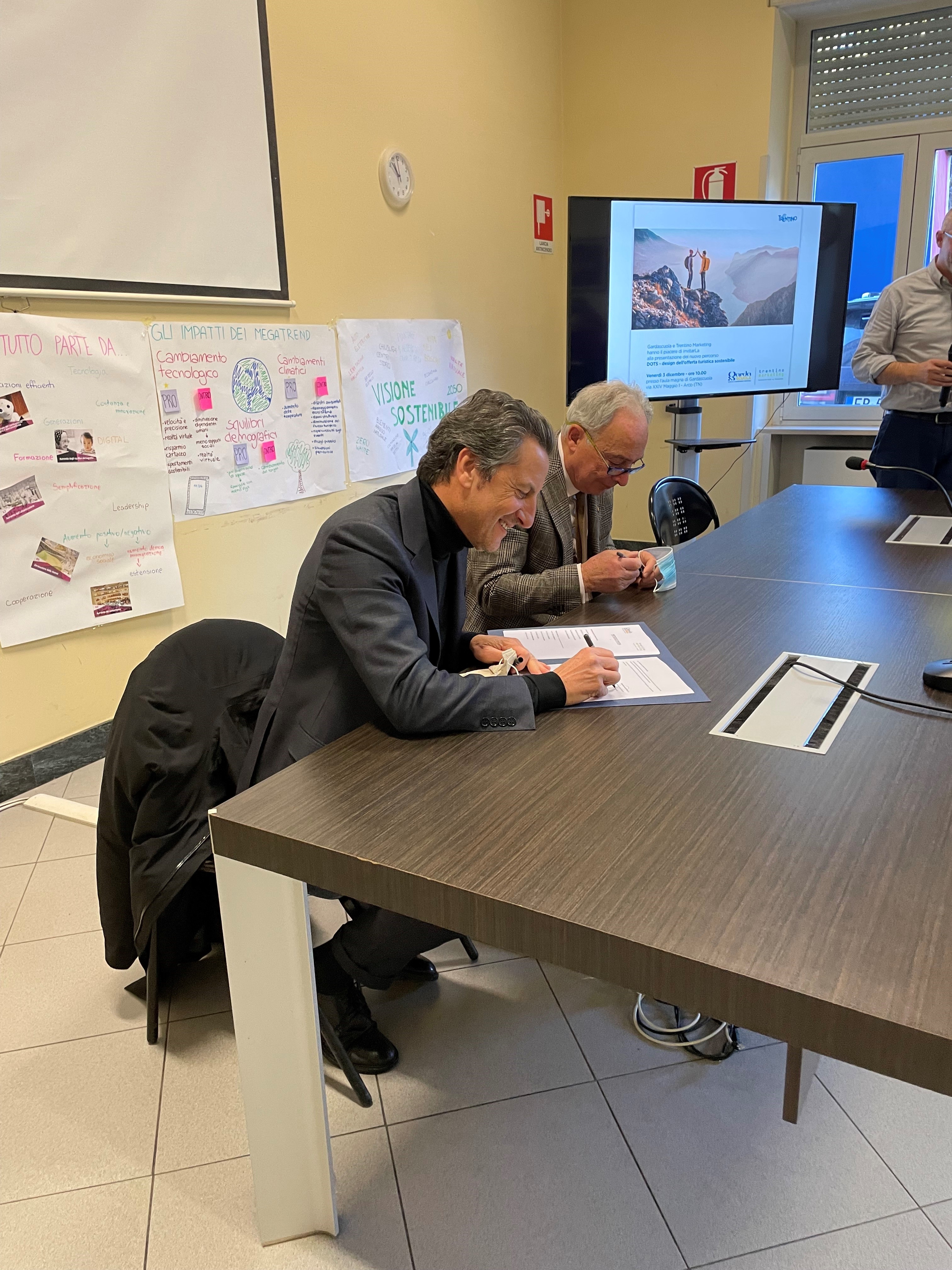 Già dall’anno scolastico 2021-2022 il protocollo si attiverà con un progetto di innovazione didattica (DOTS - Design per l’offerta turistica sostenibile) particolarmente significativo sia per la metodologia adottata, che prevede la sinergia nella co-progettazione di unità didattiche di oltre 40h tra docenti di Gardascuola ed esperti di Trentino Marketing, sia per l’intervento di professionalità di assoluto livello di enti pubblici e aziende. Un percorso trasversale tra materie diverse che hanno la sostenibilità come filo conduttore e che porterà gli studenti delle classi IV a potenziare le loro competenze nell’uso di strumenti e metodologie dell’analisi comparata e della ricerca applicata a temi prioritari in questi campi.