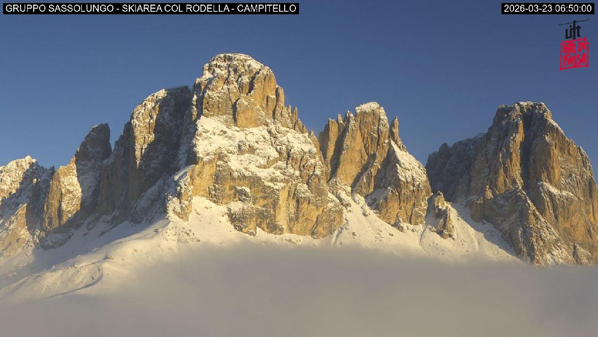 Nota: Skiarea Campitello-Mazzin-Col Rodella chiusa per fine stagione.